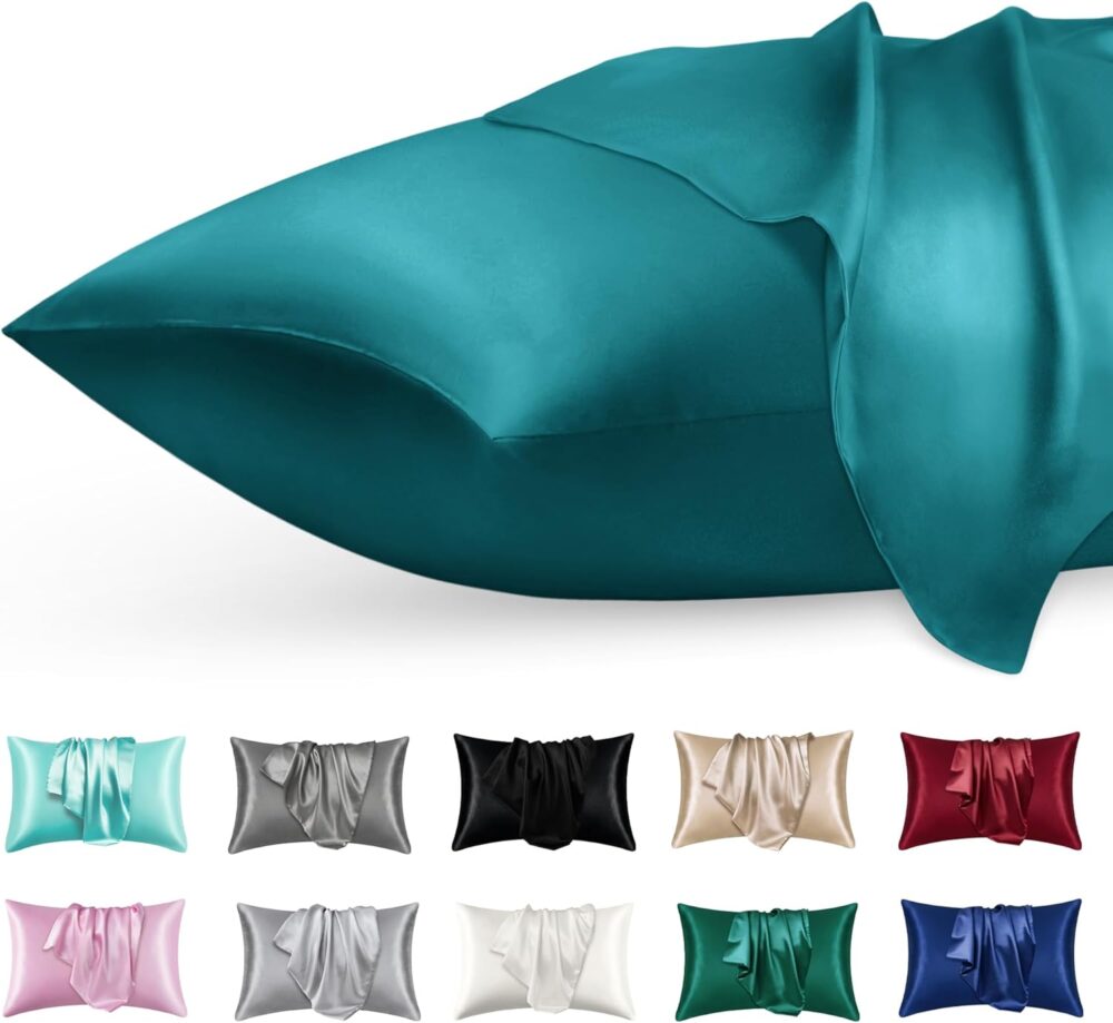 Satin Silk Pillowcase for Skin and Hair, 2 Pack – Envelope Closure – Bedding Queen Pillow Cases(20″ x 30″), Soft Breathable Smooth Cooling Silk Pillow Covers for Sleeping, Teal